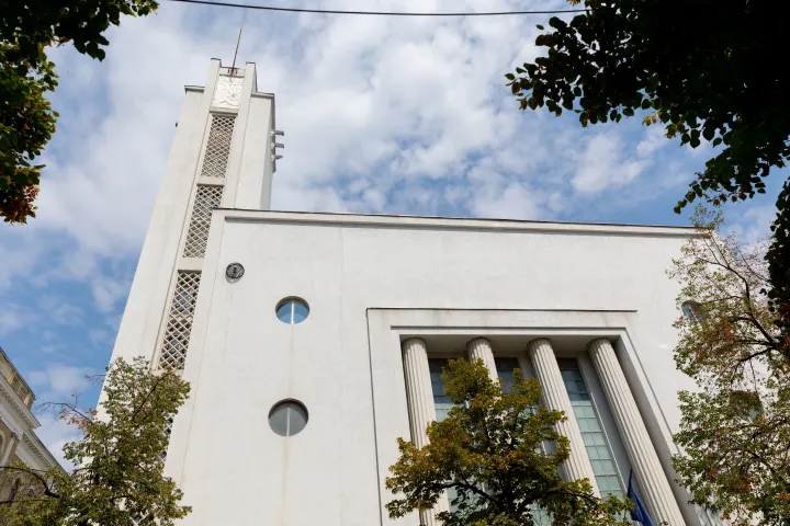 Az utca keleti részének látványát egyértelműen a Farkas utcai református templom uralja