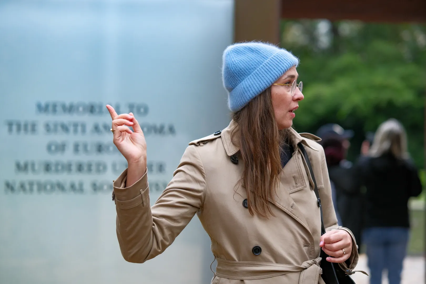 A berlini emlékműnél tett látogatás során Mirga-Kruszelnicka a hely történetét is elmesélte, kiemelve, hogy az emlékmű megszületése hosszú politikai és társadalmi küzdelem eredménye. Szerinte az emlékezésnek nemcsak szimbolikus, hanem oktatási és társadalmi jelentősége is van, különösen egy olyan közösség esetében, amelynek történetét sokáig lábjegyzetként kezelték.