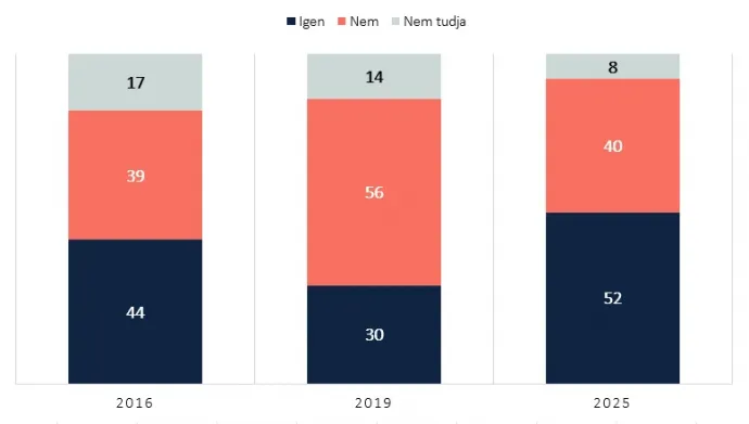 Az elemzés során lehetőségünk nyílt korábbi kutatásokkal való összehasonlításra is: 2012-ben a Medián, 2016-ban az MTA Kisebbségkutató Intézete és az NSKI, 2019-ben pedig az NSKI végzett hasonló tematikájú mérést. Ezek a vizsgálatok a mostani omnibusz adatfelvételnél jóval átfogóbbak voltak, most azonban csak a 2025-ös adatfelvételben szereplő kérdéseket érintjük.