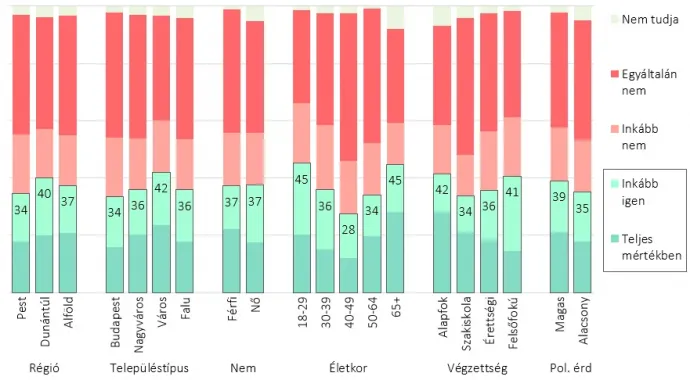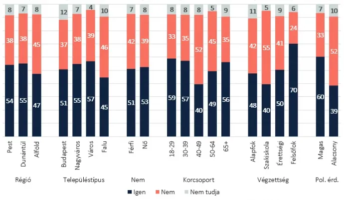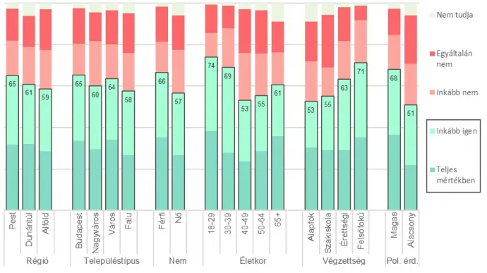 A támogatások ellenzői nagyobb arányt képviselnek a hátrányos helyzetű régiókban és településeken, így az Alföldön (beleértve Észak-Magyarországot) és a falvakban, továbbá a 40–49 évesek és a szakiskolai végzettségűek körében. A pozitívan viszonyulók aránya magasabb a fiatalok, és kiemelkedő a felsőfokú végzettséggel rendelkezők között. A politika iránt érdeklődők szintén nagyobb arányban fogadják el a kisebbségi magyar közösségek anyagi támogatását.
